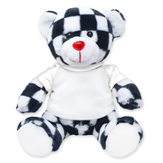 Rev your engines, this uniquely patterned teddy is totally awesome! Our victory bear is made of a super soft, long-pile velboa and sitting at a height of 9", this checkered teddy bear is fantastic for cuddling. It comes with a shirt that you can personalize to make all your own and is perfect for kids, adults, boys, girls, and anyone in between!