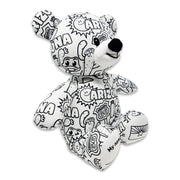 What a cool teddy! You can color on it with the provided markers or use any other washable markers you may already own. It is machine washable, so you can wash it and start the fun all over! This teddy has "Arizona" printed on it along with related icons. Icons include the state flag, a diamondback rattler, a saguaro, and even a Route 66 road sign. Top these things off by giving your bear a name and birthday.