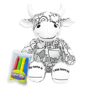What a cool cow! You can color on it with the provided markers or use any other washable markers you may already own. It is machine washable, so you can wash it and start the fun all over! This cow has "Iowa" printed on it along with related icons. Icons include the state outline, a barn, a corncob, and pig. Top these things off by giving your cow a name and birthday.