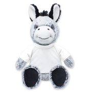 This donkey, sitting at 9" in height, doesn’t bite, it cuddles! It comes with a shirt that you can personalize to make your own and is perfect for kids, adults, and anyone in between!