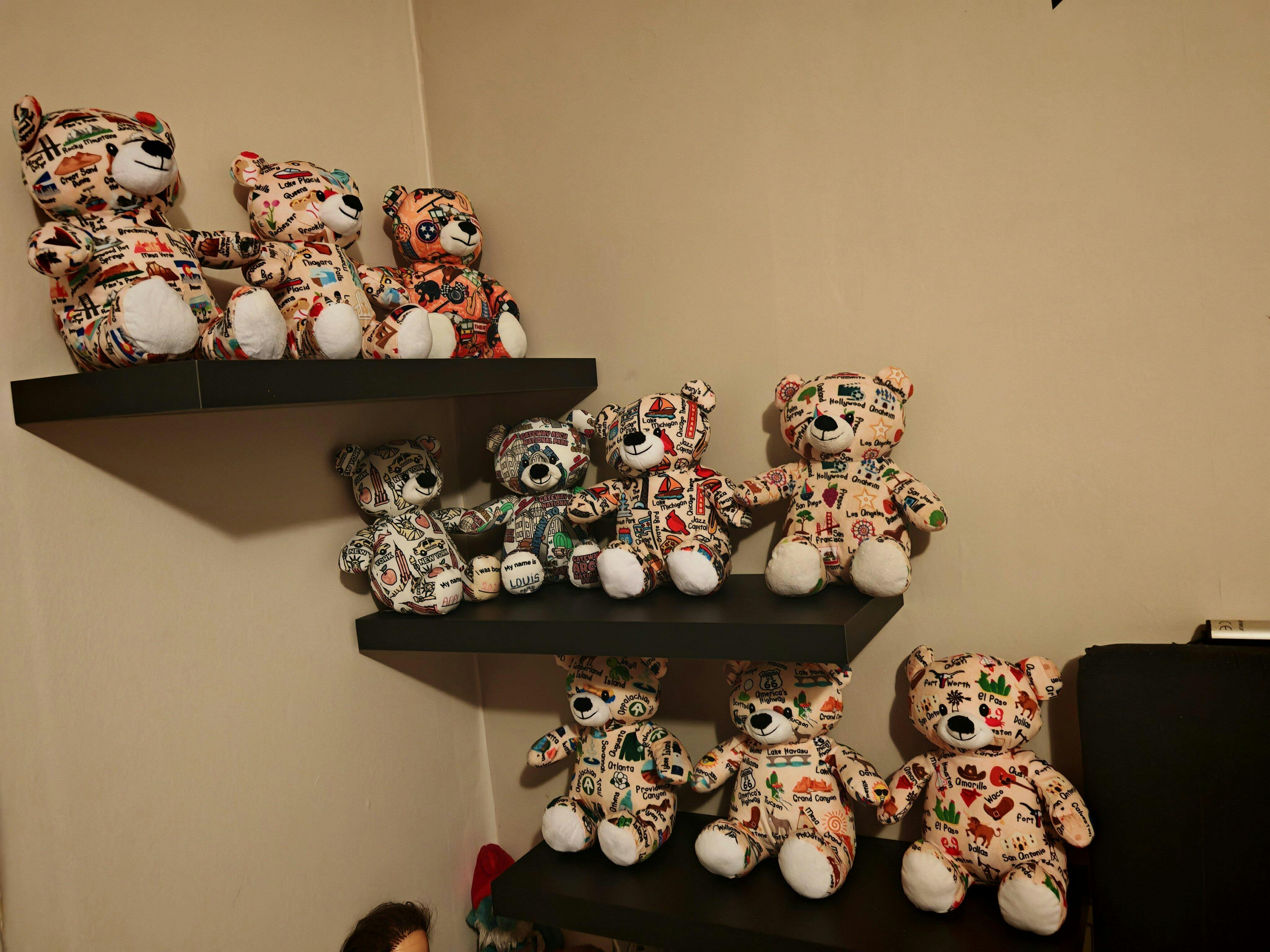 This super soft teddy bear is printed with city names and related icons. This is a proprietary design printed on soft velboa material. When sewn into a teddy, it creates a unique item unlike any of the others made from the same material. Locations include: Manhattan, Rochester, Albany, Brooklyn, Adirondacks, Catskills, Long Island, Syracuse, Bronx, Hudson Valley, Queens, Lake Placid, Staten Island, Buffalo, and Niagara Falls!